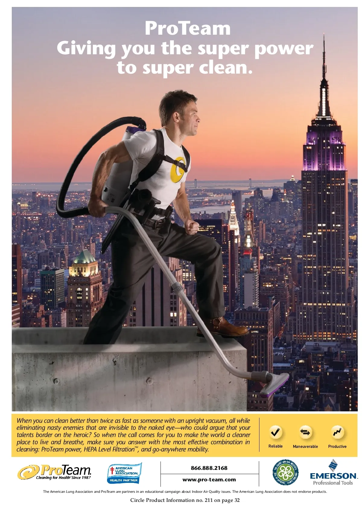 ProTeam Giving you the super power to super clean. Reliable Maneuverable Productive 866.888.2168 www.pro-team.com The American Lung Association and ProTeam are partners in an educational campaign about Indoor Air Quality issues. The American Lung Association does not endorse products.