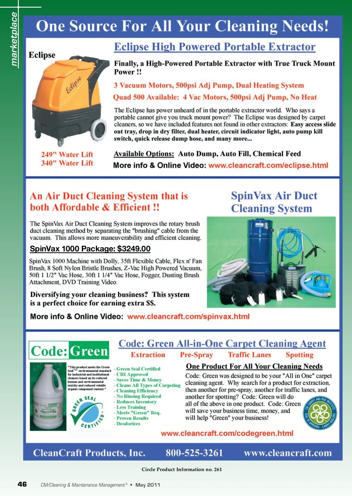 marketplace :WPU=H_  7HJRHNL! �b;a;b;  Circle Product Information no. 261 46 CM/Cleaning & Maintenance Management ® • May 2011