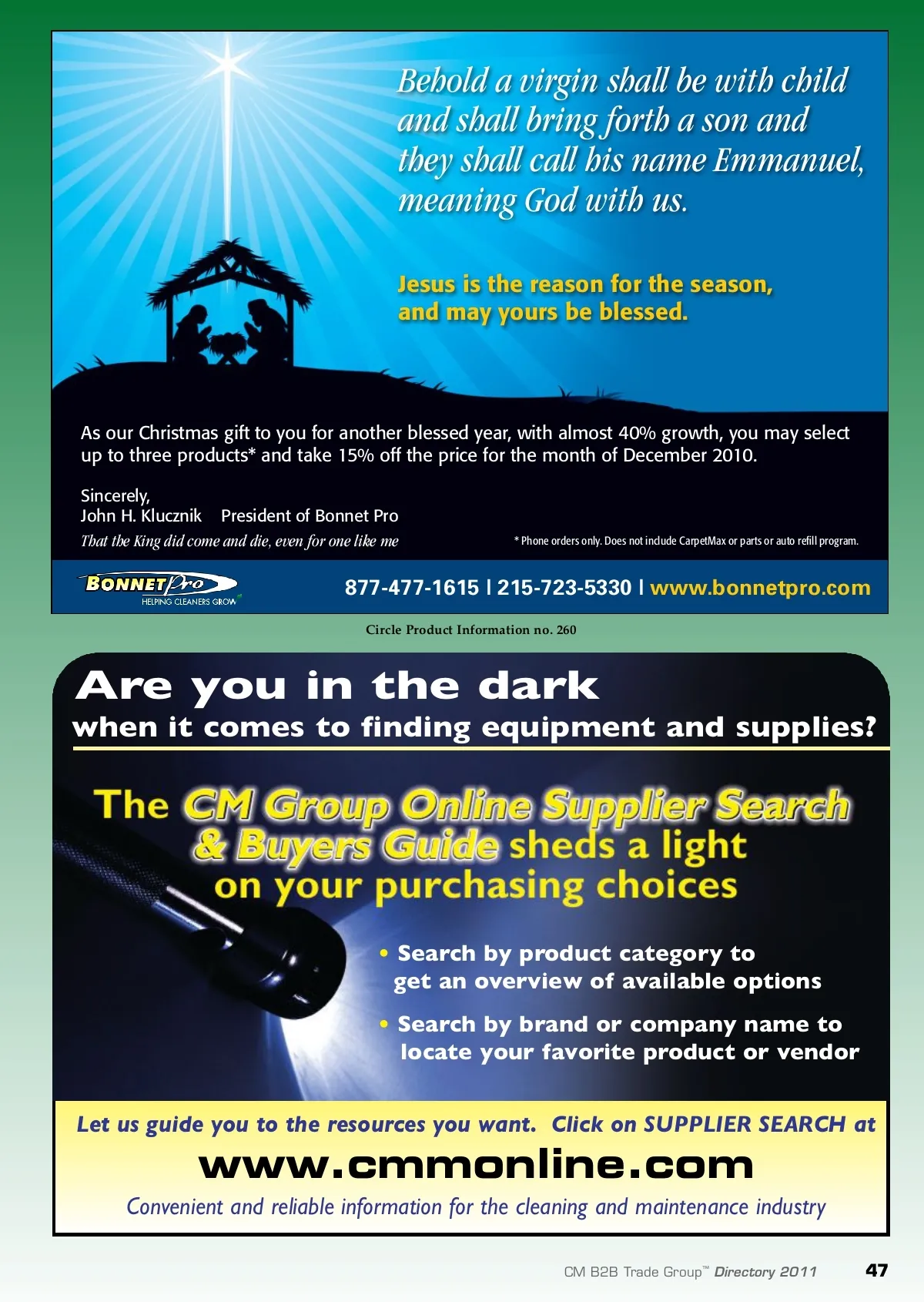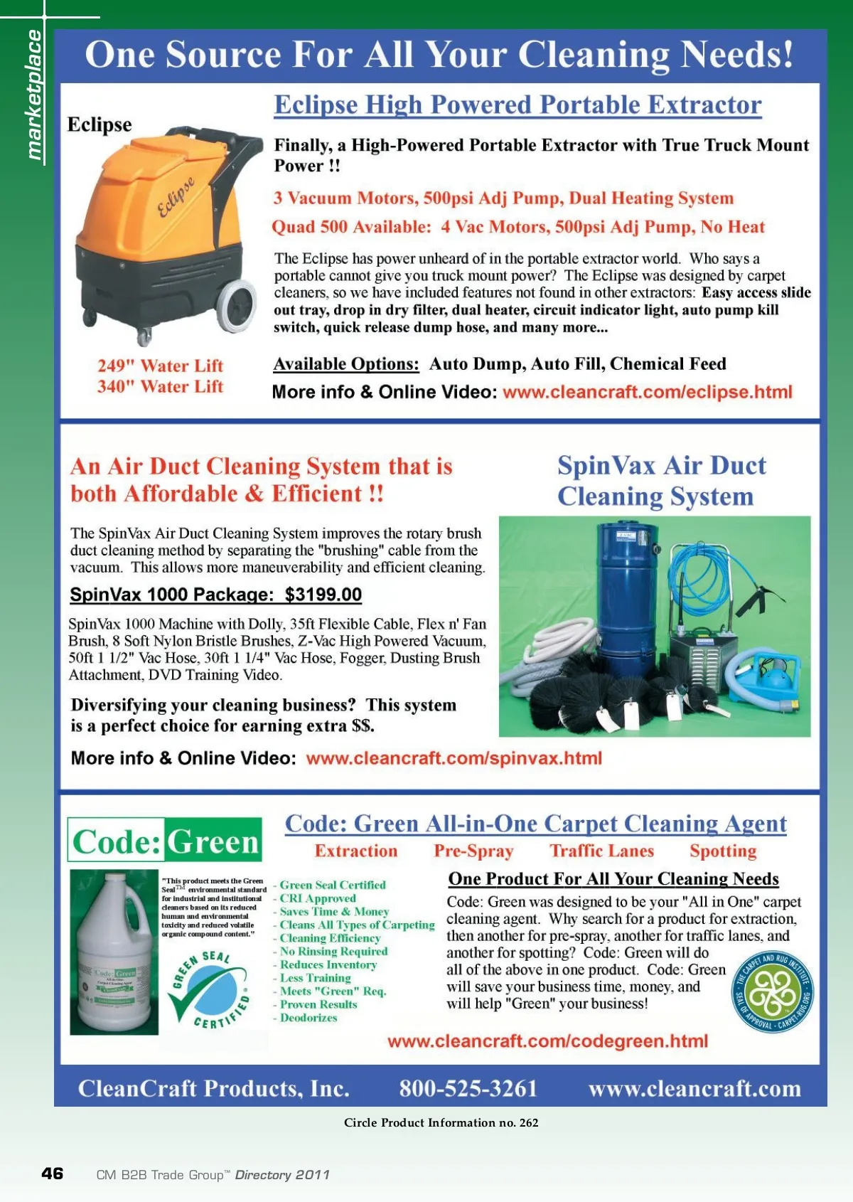 marketplace Circle Product Information no. 262 46 CM B2B Trade Group ™ Directory 2011