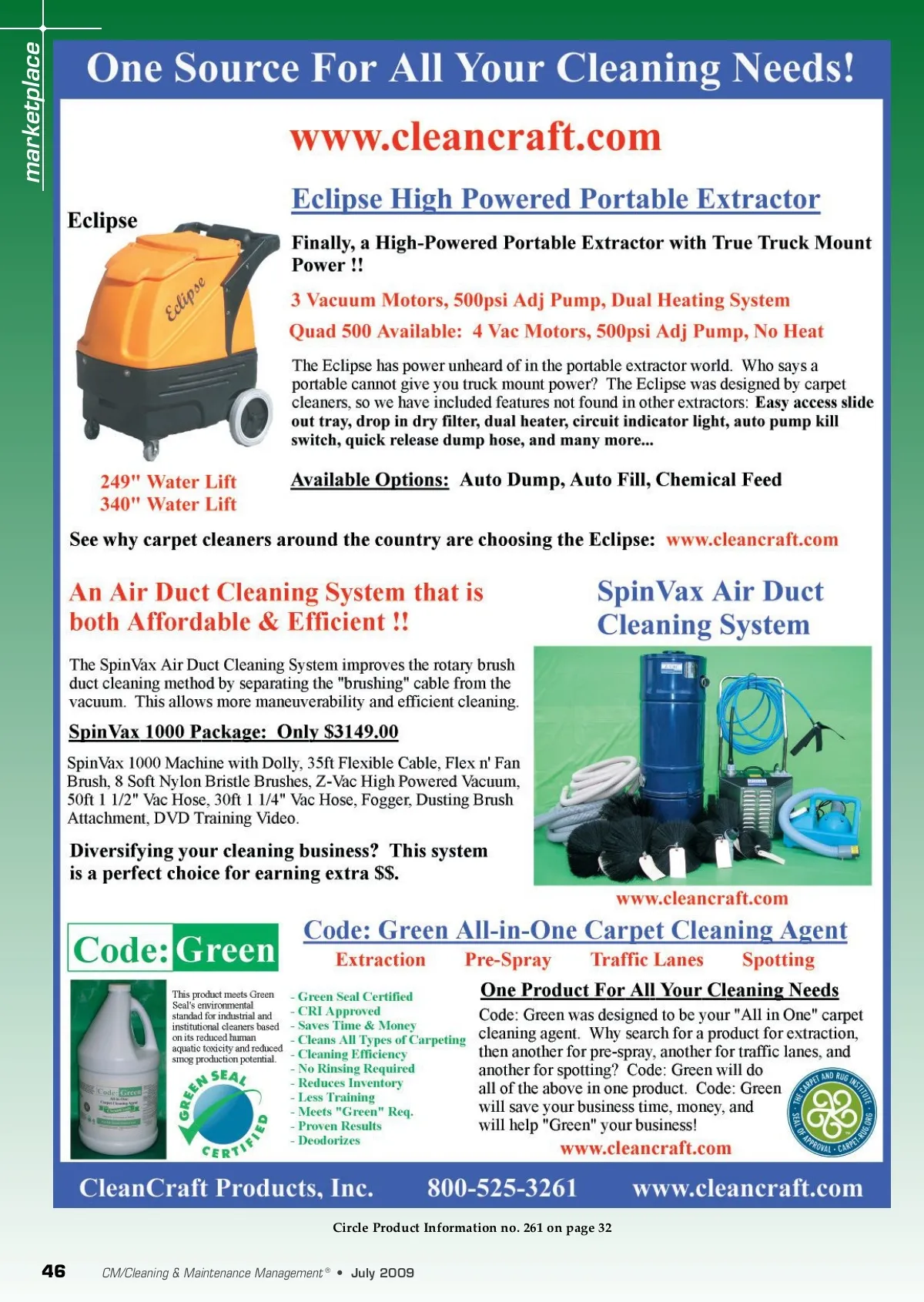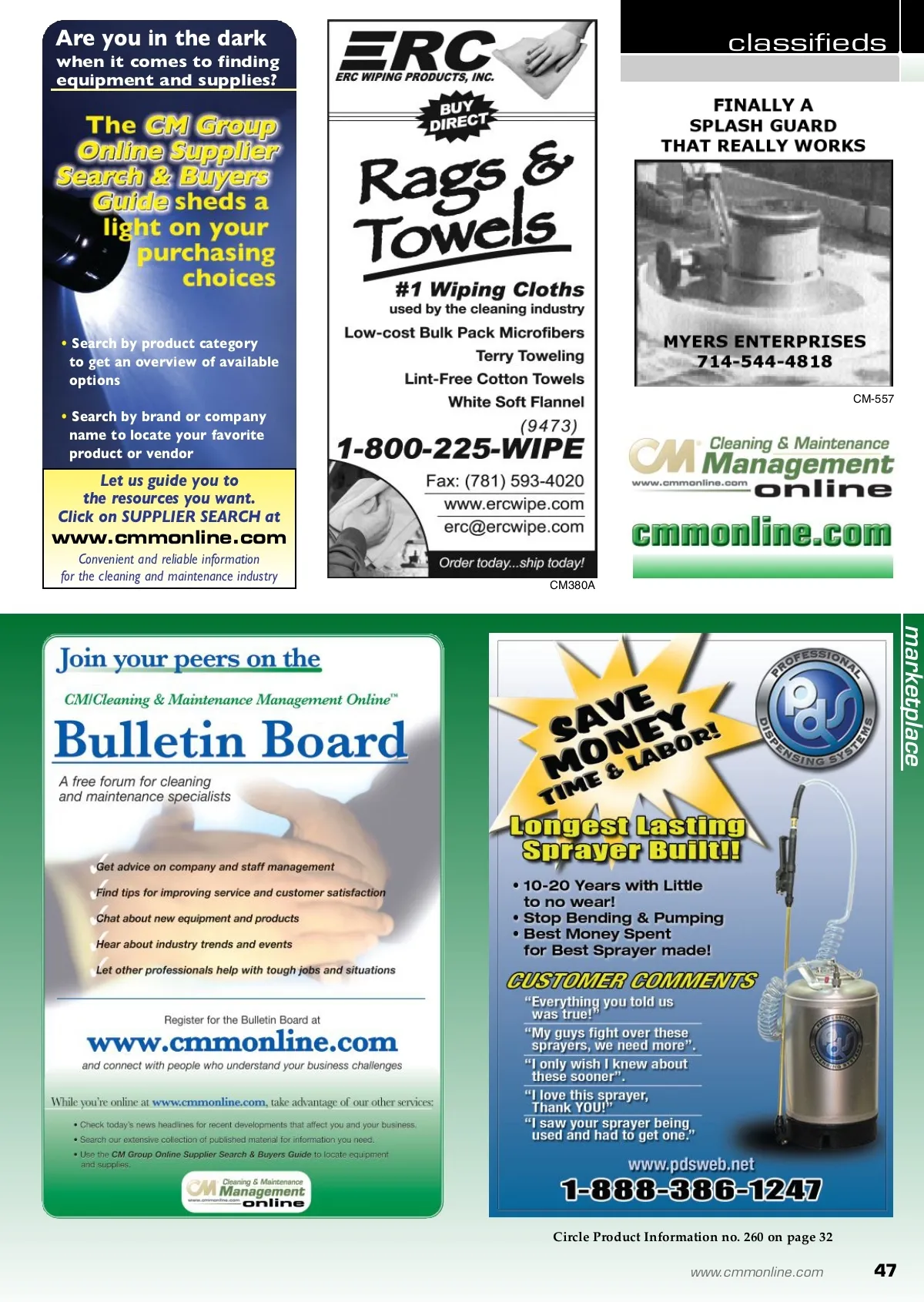 marketplace Circle Product Information no. 261 on page 32 46 CM/Cleaning & Maintenance Management ® • July 2009