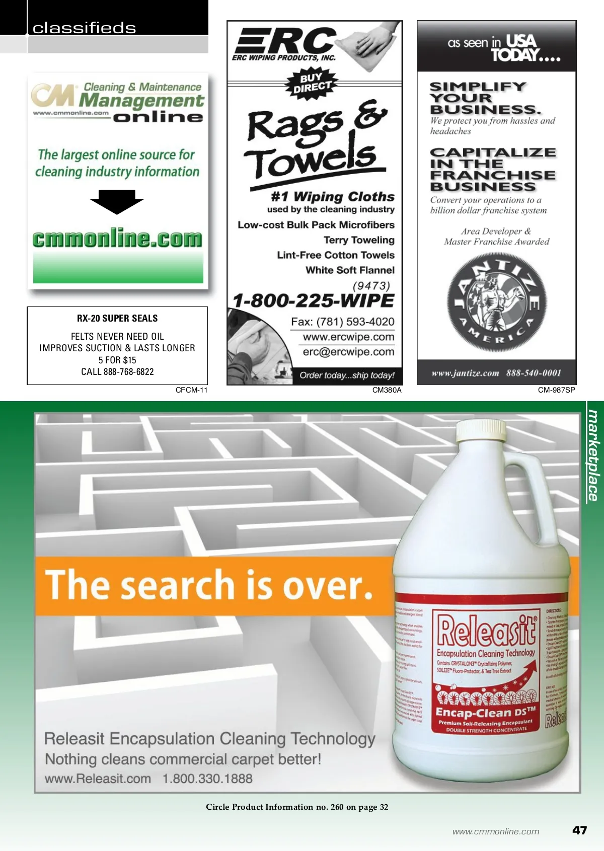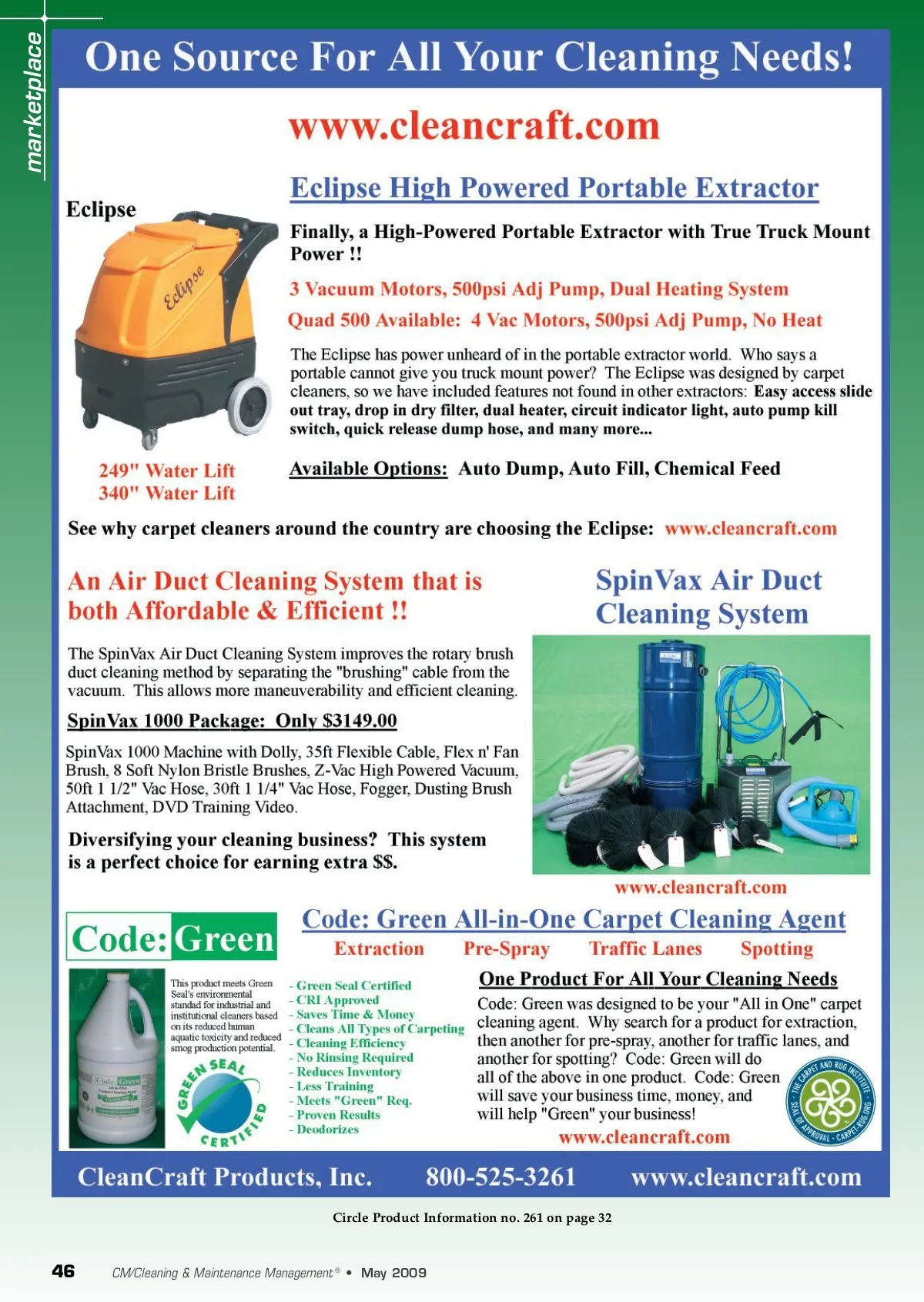marketplace Circle Product Information no. 261 on page 32 46 CM/Cleaning & Maintenance Management ® • May 2009