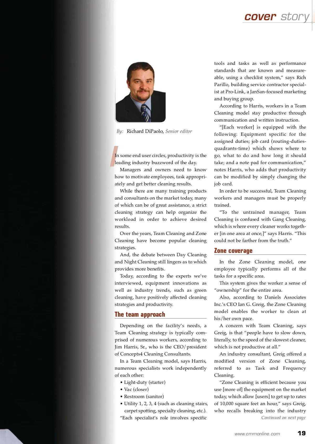 cover story Looking to improve productivity and efficiency? for more info Visit www.cmmonline.com and type in search keyword: Productivity . For more information on related products, visit www.cmmonline.com , select SUPPLIER SEARCH from the main navigation bar, and enter keyword: Consultants . 18 CM/Cleaning & Maintenance Management ® • March 2009